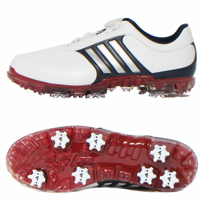 アディダス メンズ ゴルフ ダイヤル式 ゴルフシューズ ピュアメタル ボア プラス ソフトスパイク : ホワイト×レッド (WI941) adidas